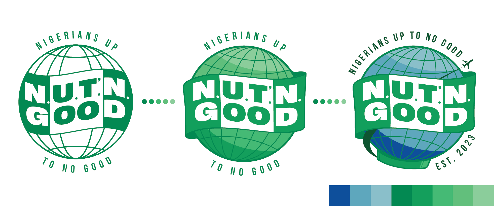 I was approached to develop the brand identity for Up To No Good, an upstart travel podcast. The project involved creating a comprehensive visual identity—including a logo and color palette inspired by the Nigerian flag—as well as a full concept animation to serve as the podcast’s intro and a couple variations to be used for promotion on social media.