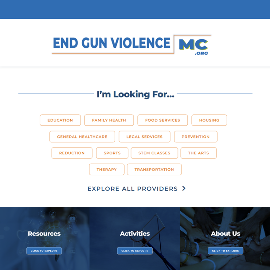 Designed/developed informational hub connecting local providers with other community groups seeking to reduce gun violence.